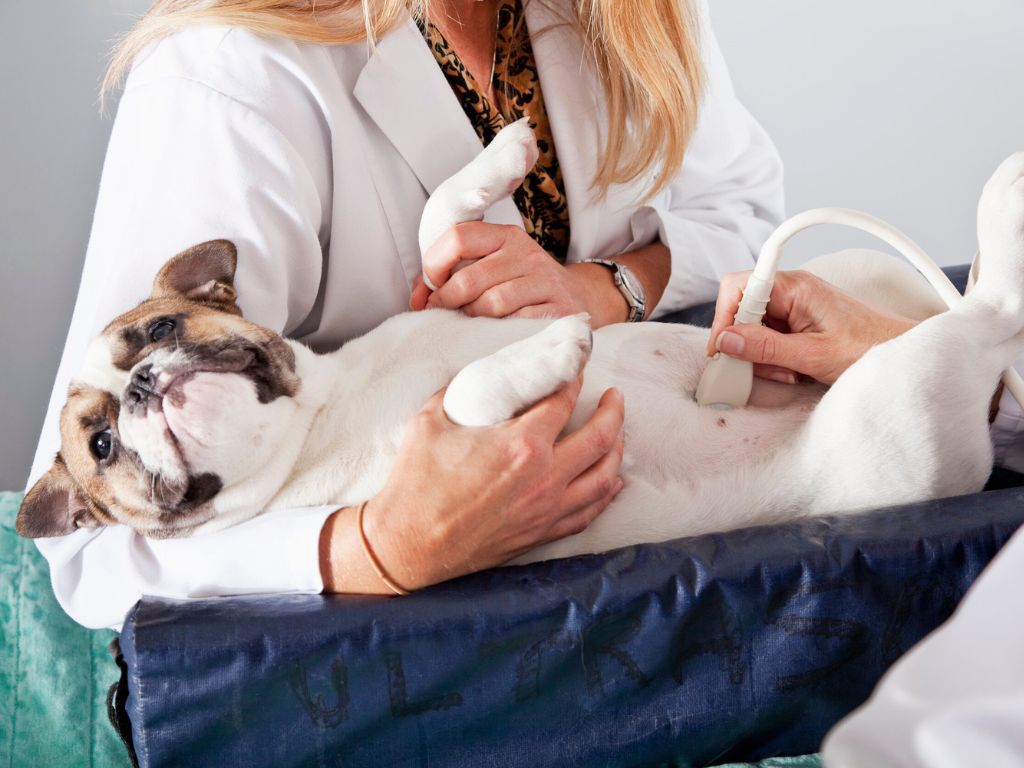 - Ultrasound – Confirms pregnancy and may detect fetal heartbeats by week four. It’s difficult, however, to count puppies accurately this way.